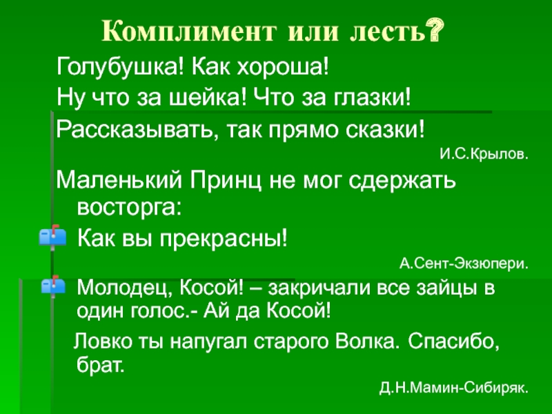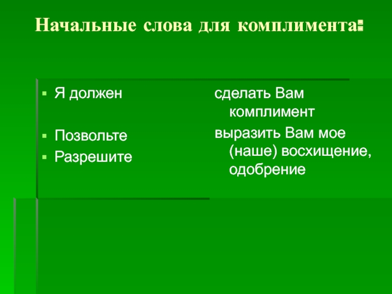 любезные, приятные слова, лестный отзыв. Говорить комплименты.