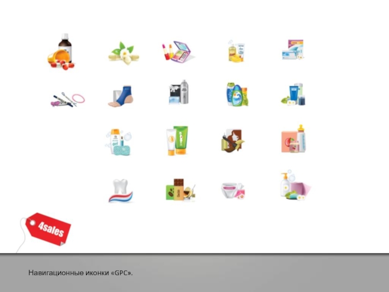 Слайд 7 Навигационные элементы «Сити Фарма». Иконки, навигация над стеллажами и колоннами.