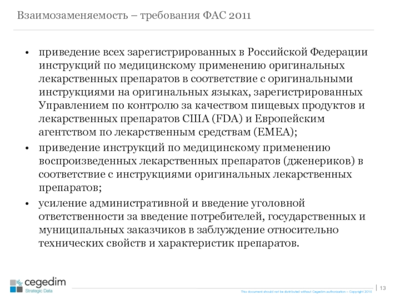 Взаимозаменяемость – требования ФАС 2011