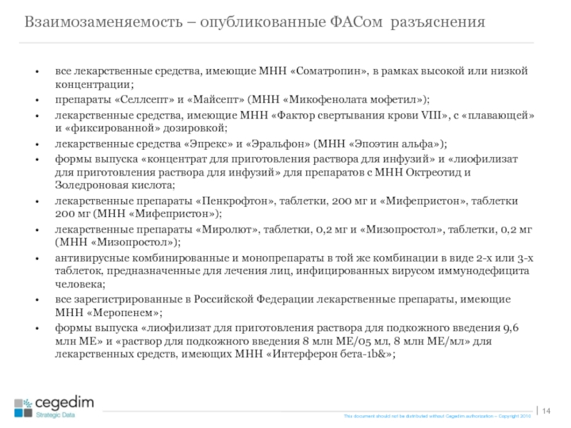 В то время, как во всем мире лекарственные препараты, имеющие одинаковое МНН, считаются взаимозаменяемыми, в Российской Федерации назначение таких препаратов, выписка и закупка для государственных нужд определяется лечащими врачами по своему усмотрению.