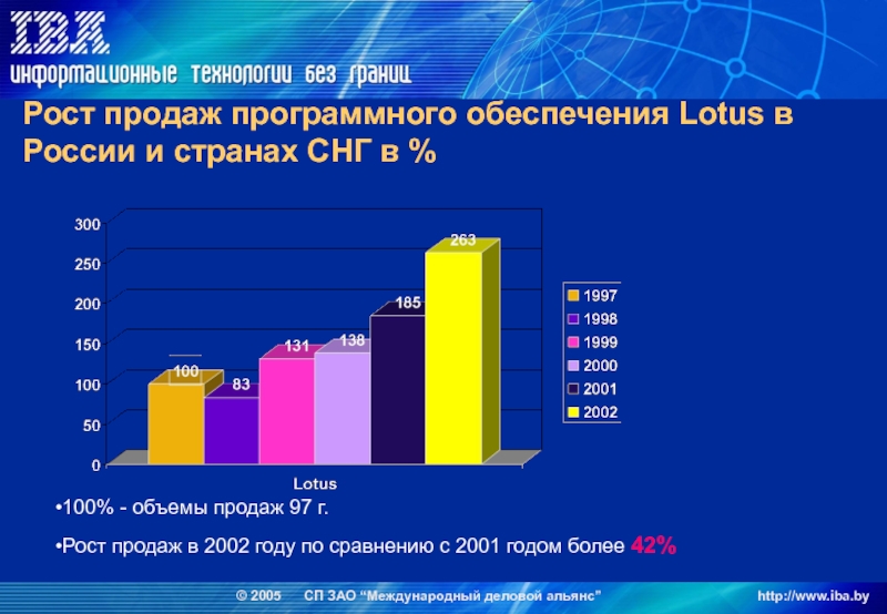 Рост продаж в 2002 году по сравнению с 2001 годом более 42%