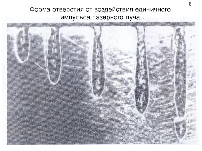 Слайд 8Форма отверстия от воздействия единичного импульса лазерного луча