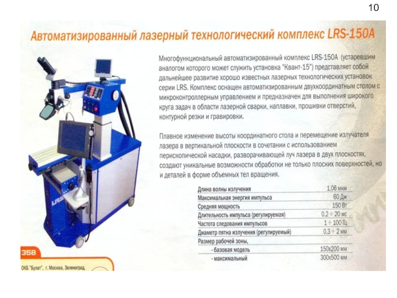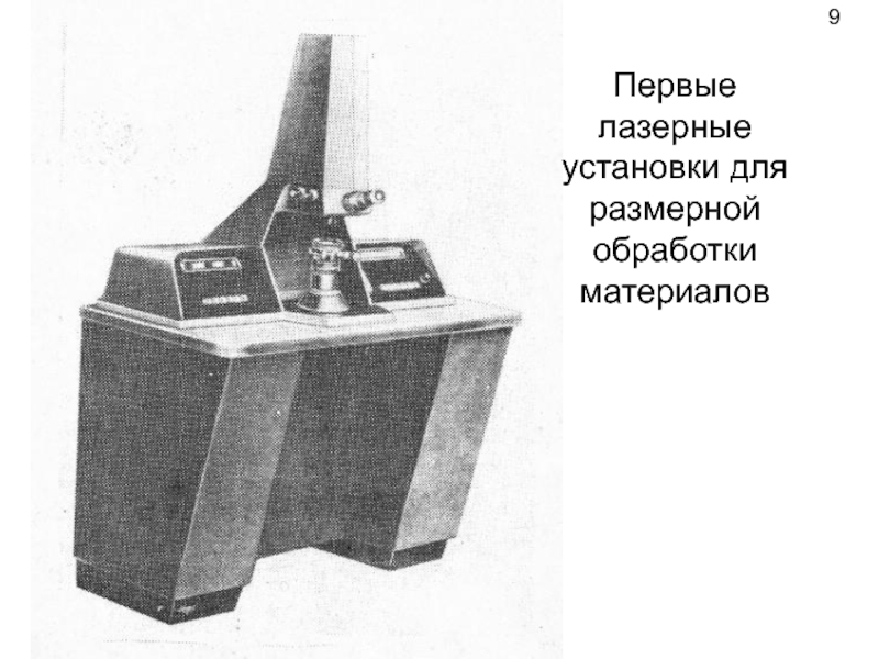 Слайд 9Первые лазерные установки для размерной обработки материалов