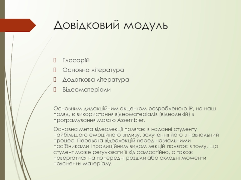 Слайд 13Довідковий модуль