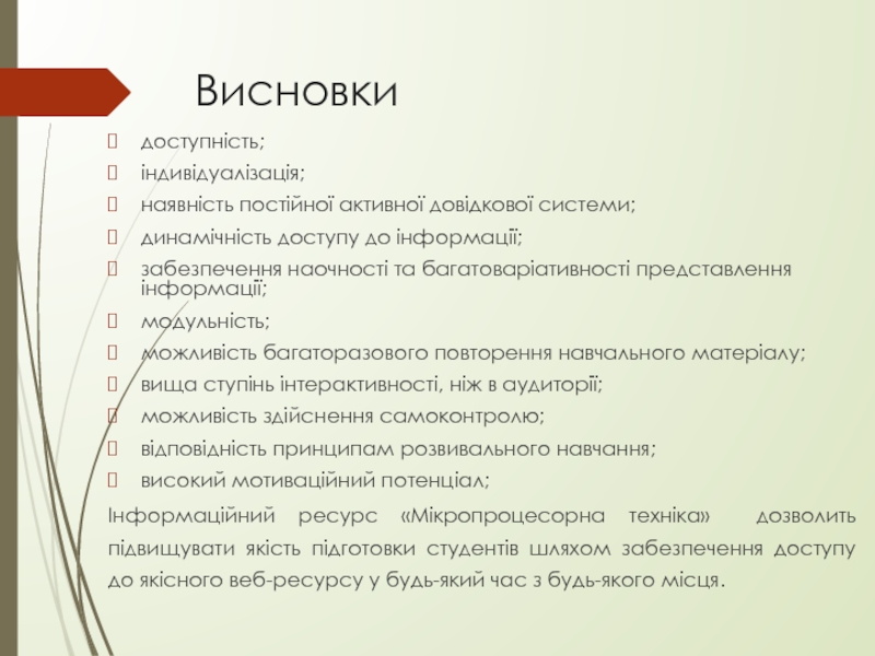 Інформаційний ресурс «Мікропроцесорна техніка» дозволить підвищувати якість підготовки студентів шляхом забезпечення доступу до якісного веб-ресурсу у будь-який час з будь-якого місця.