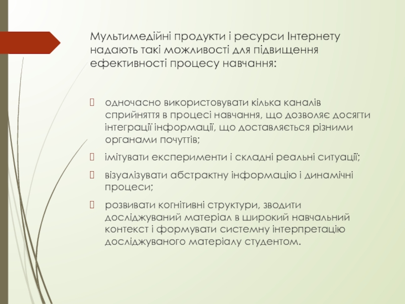 Слайд 4Мультимедійні продукти і ресурси Інтернету надають такі можливості для підвищення ефективності