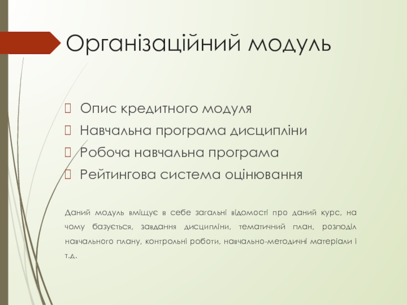 Слайд 10Організаційний модуль