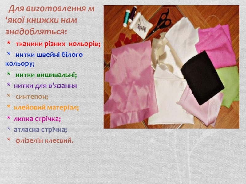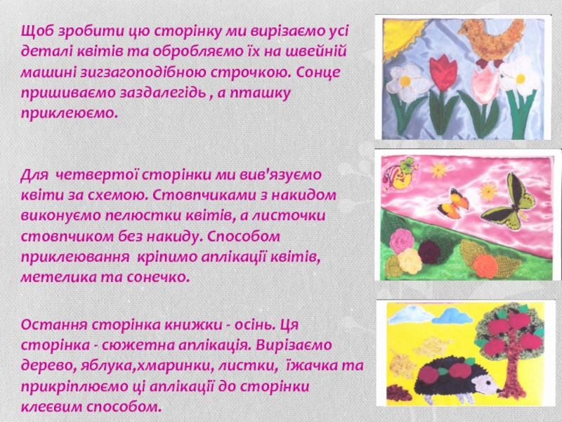 * Виготовити м'яку розвиваючу книжку як один із видів розвиваючої іграшки для дітей віком від 3 до 5 років.