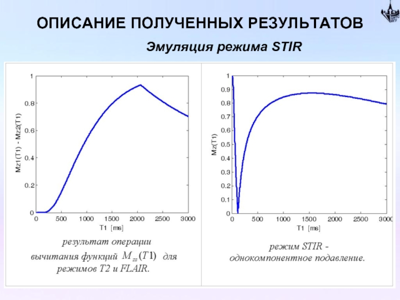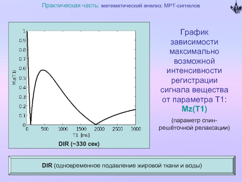 График зависимости максимально возможной интенсивности регистрации сигнала вещества от параметра T1: Mz(T1)