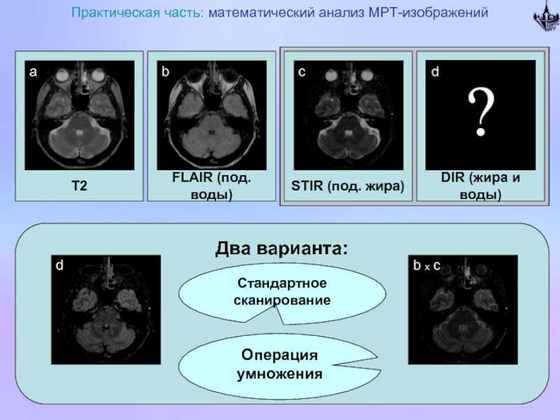 Б) разработать математический аппарат для алгебраических операций с данными от разных режимов МРТ-сканирования.