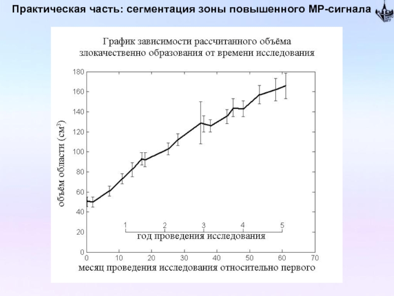 Б) произвести оценку изменения объёма злокачественного образования за продолжительный промежуток времени.