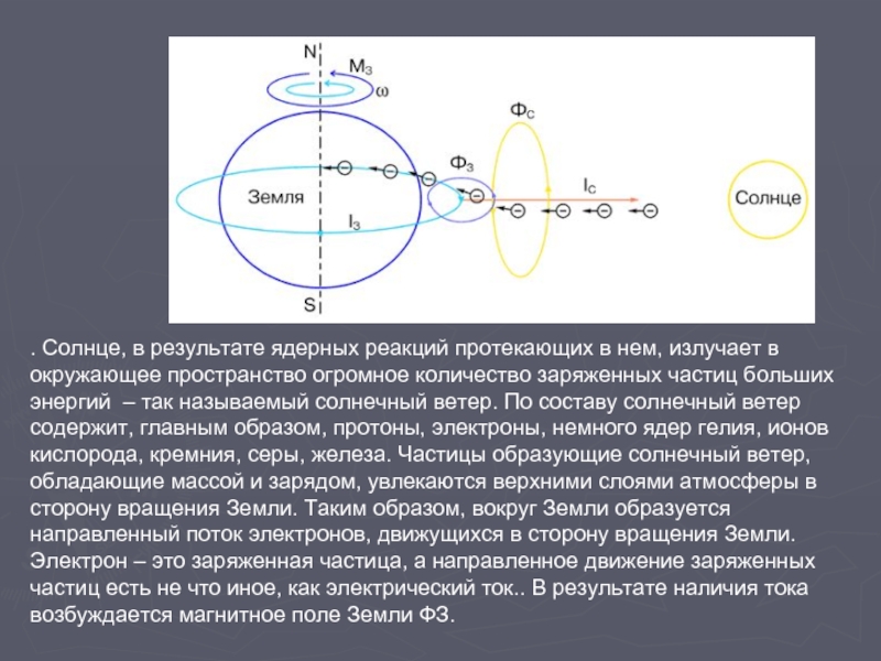 В результате торможения заряженных частиц вблизи полюсов, а также их столкновений с молекулами атмосферного воздуха возникает электромагнитное излучение (радиация), наблюдаемая в виде полярных сияний.