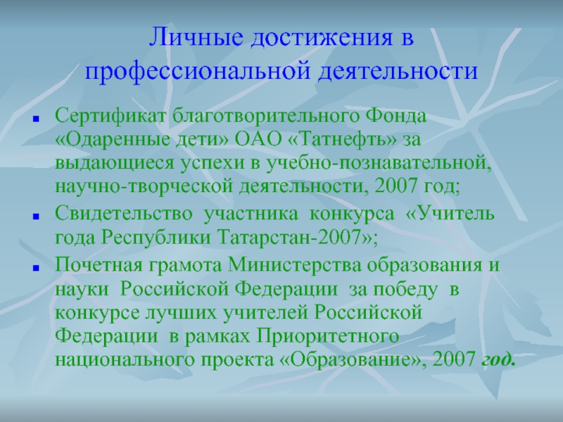 Слайд 3Личные достижения в профессиональной деятельности