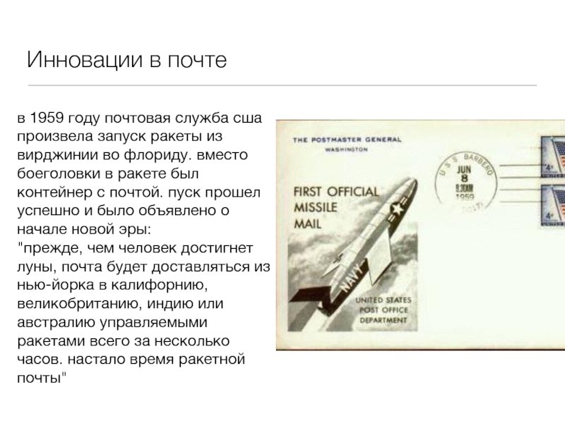 в 1959 году почтовая служба сша произвела запуск ракеты