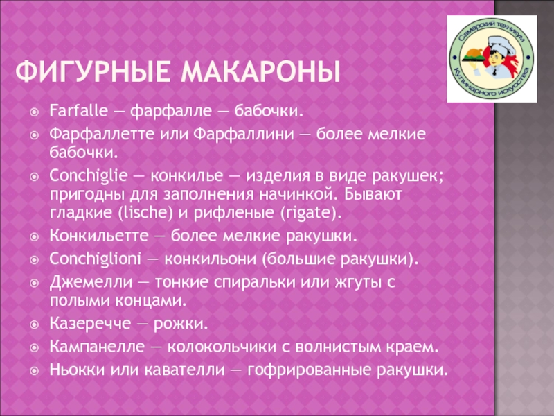 Слайд 29ФИГУРНЫЕ МАКАРОНЫ