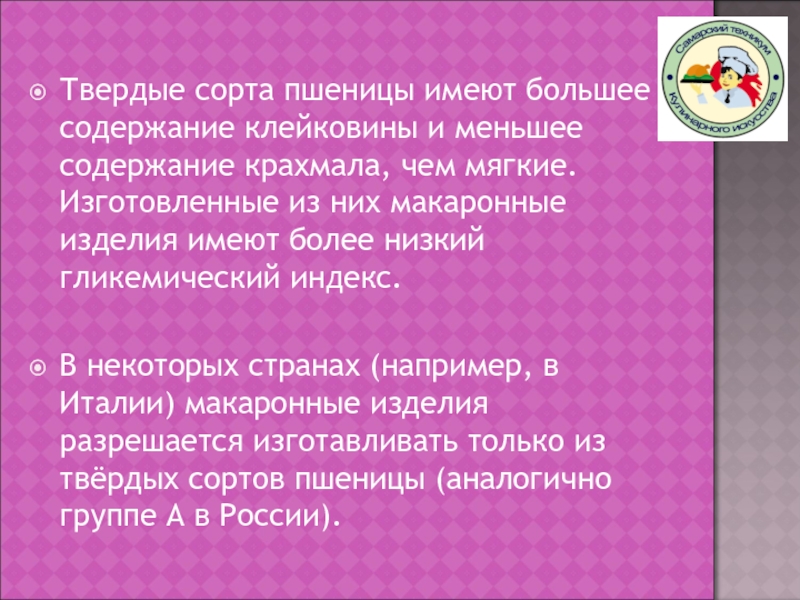чем мягкие. Изготовленные из них макаронные изделия имеют более низкий гликемический индекс.