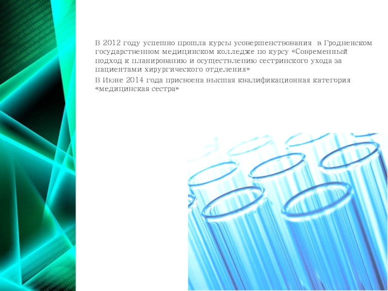 Слайд 8В 2012 году успешно прошла курсы усовершенствования в Гродненском государственном медицинском