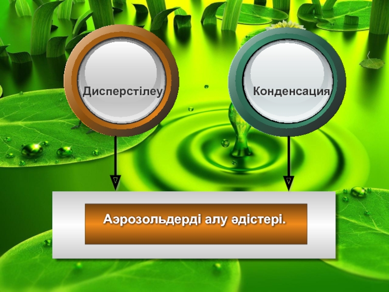 Көп көлемдегі сулы ерітінділердің аэрозольдерін осы әдіспен алады.