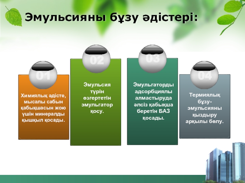 Термиялық бұзу- эмульсияны қыздыру арқылы бөлу.
