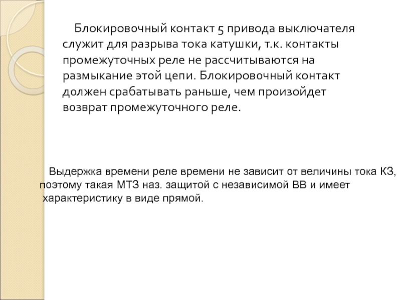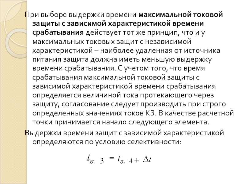 Выдержка времени реле времени не зависит от величины тока КЗ,