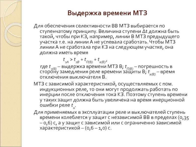 поэтому такая МТЗ наз. защитой с независимой ВВ и имеет