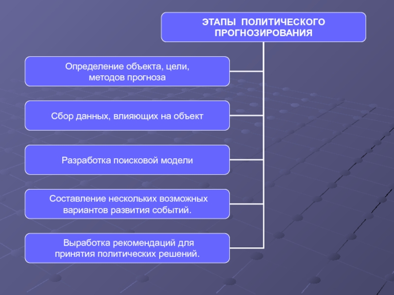 6. Прогностическая функция призвана разрабатывать желаемые и возможные варианты развития политических процессов, учитывая действие различных факторов.