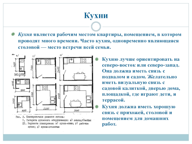Кухню лучше ориентировать на северо-восток или северо-запад. Она должна иметь связь с подвалом и садом. Желательно иметь визуальную связь с садовой калиткой, дверью дома, площадкой, где играют дети, и террасой.
