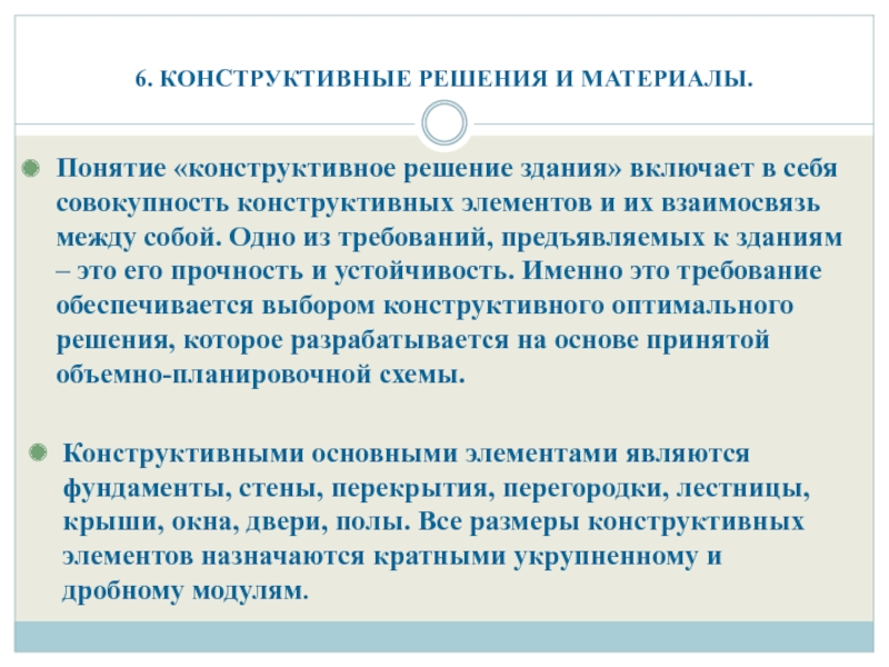 перегородки, лестницы, крыши, окна, двери, полы. Все размеры конструктивных элементов назначаются кратными укрупненному и дробному модулям.