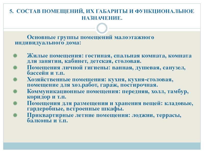 Слайд 105. СОСТАВ ПОМЕЩЕНИЙ, ИХ ГАБАРИТЫ И ФУНКЦИОНАЛЬНОЕ НАЗНАЧЕНИЕ.