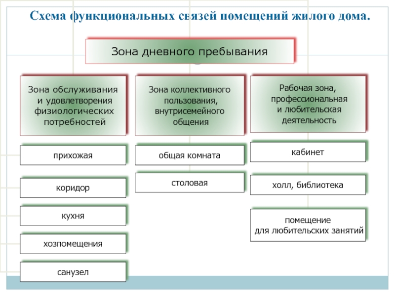 Слайд 8Схема функциональных связей помещений жилого дома.