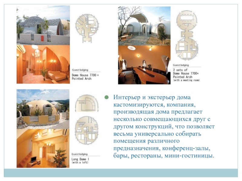 Слайд 38Интерьер и экстерьер дома кастомизируются, компания, производящая дома предлагает несколько совмещающихся