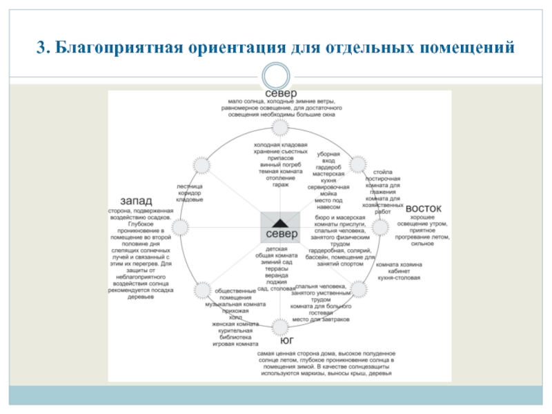 Слайд 63. Благоприятная ориентация для отдельных помещений