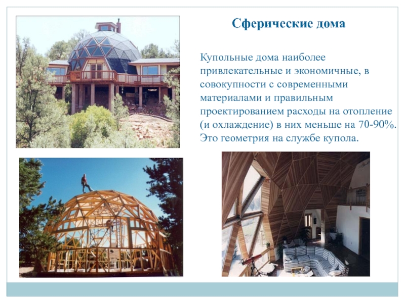 и правильным проектированием расходы на отопление (и охлаждение) в них меньше на 70-90%. Это геометрия на службе купола.