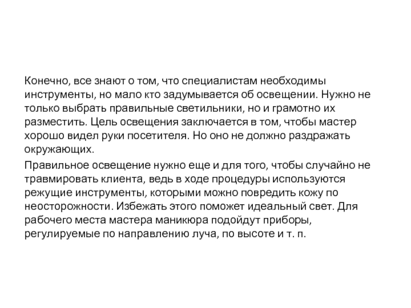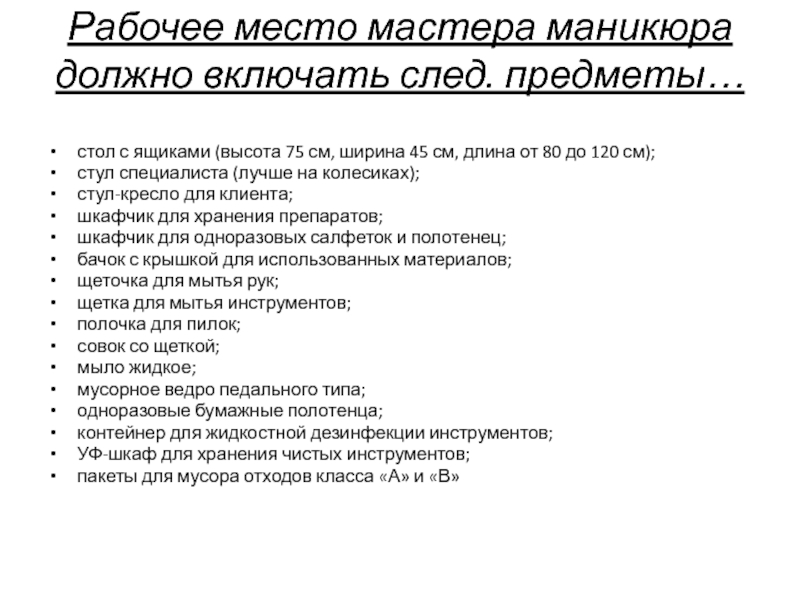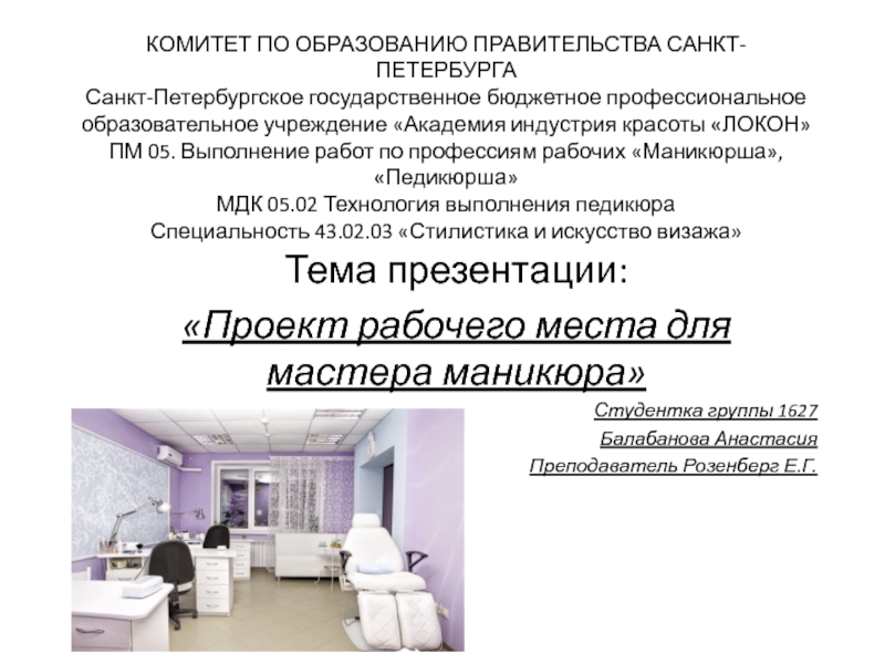 «Проект рабочего места для мастера маникюра»
