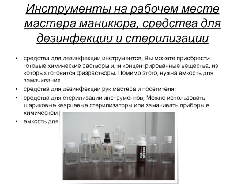 средства для стерилизации инструментов; Можно использовать шариковые кварцевые стерилизаторы или замачивать приборы в химическом растворе.