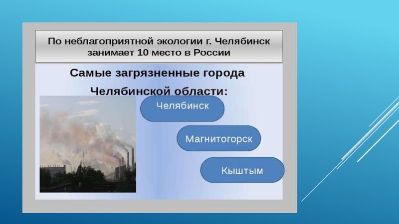 Слайд 1ЭКОЛОГИЧЕСКИЕ ПРОБЛЕМЫ ЧЕЛЯБИНСКОЙ ОБЛАСТИ