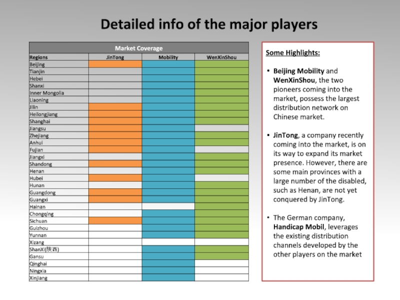 JinTong, a company recently coming into the market, is on its way to expand its market presence. However, there are some main provinces with a large number of the disabled, such as Henan, are not yet conquered by JinTong.