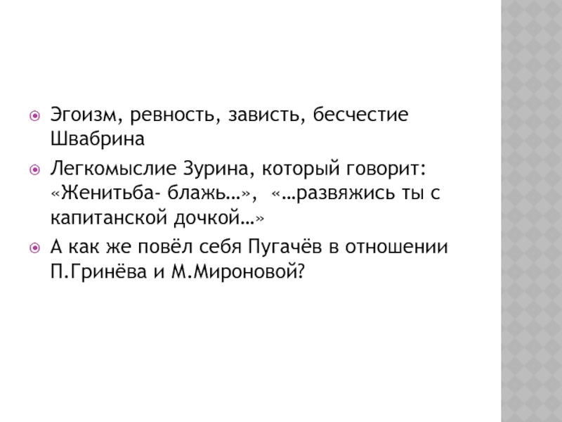 Эгоизм, ревность, зависть, бесчестие Швабрина