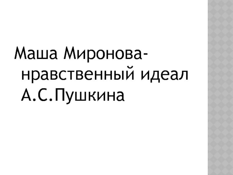 Маша Миронова- нравственный идеал А.С.Пушкина