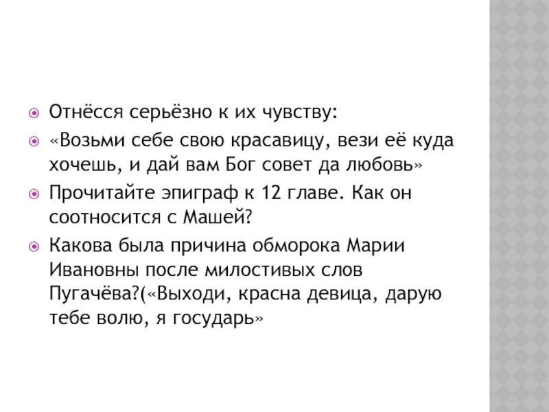 Какова была причина обморока Марии Ивановны после милостивых слов Пугачёва?(«Выходи, красна девица, дарую тебе волю, я государь»