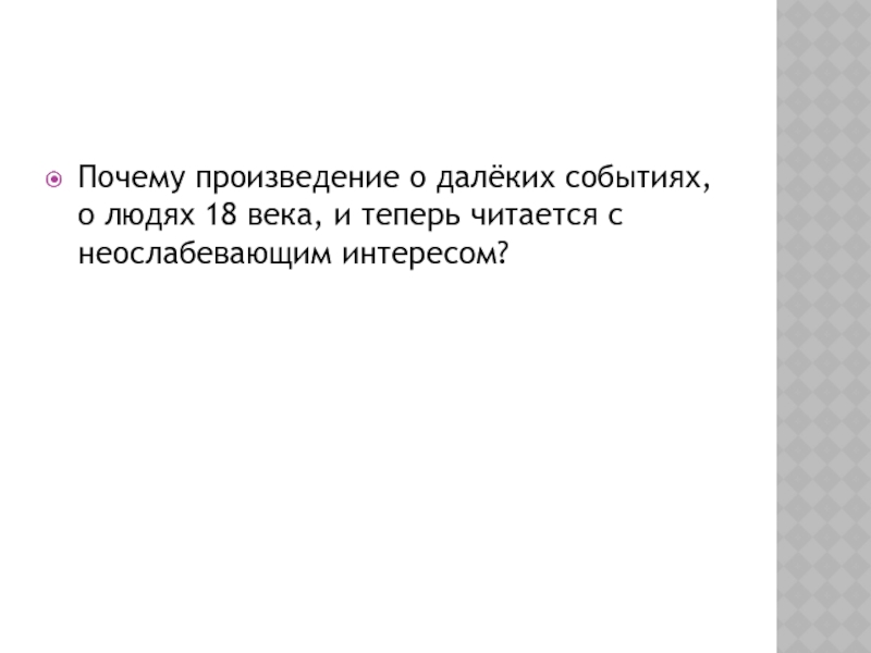 Почему произведение о далёких событиях, о людях 18 века, и теперь