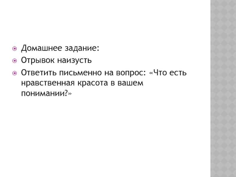 Ответить письменно на вопрос: «Что есть нравственная красота в