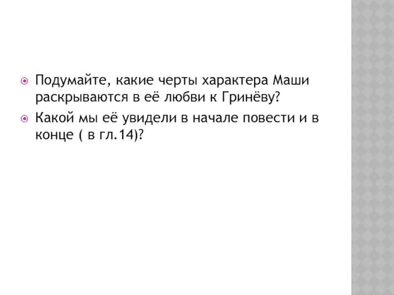 Подумайте, какие черты характера Маши раскрываются в её любви к Гринёву?