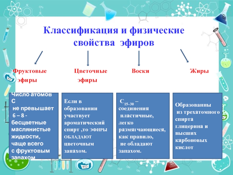Если в образовании участвует ароматический спирт ,то ЭФИРЫ ОБЛАДАЮТ цветочным запахом.