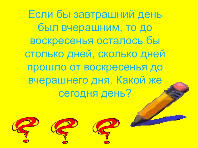 Слайд 63Если бы завтрашний день был вчерашним, то до воскресенья осталось бы