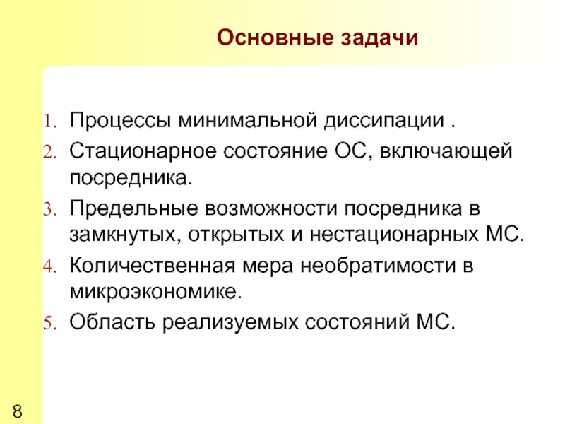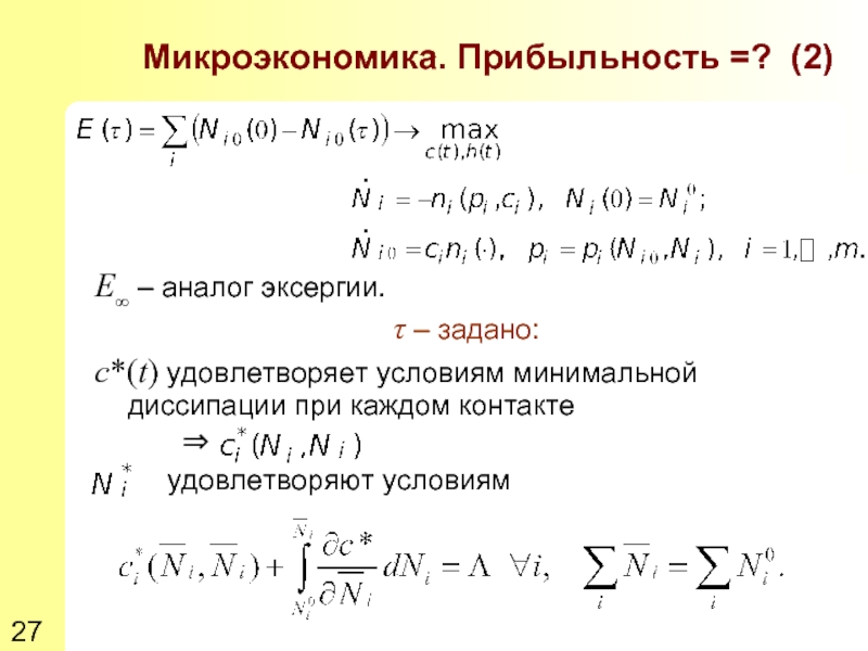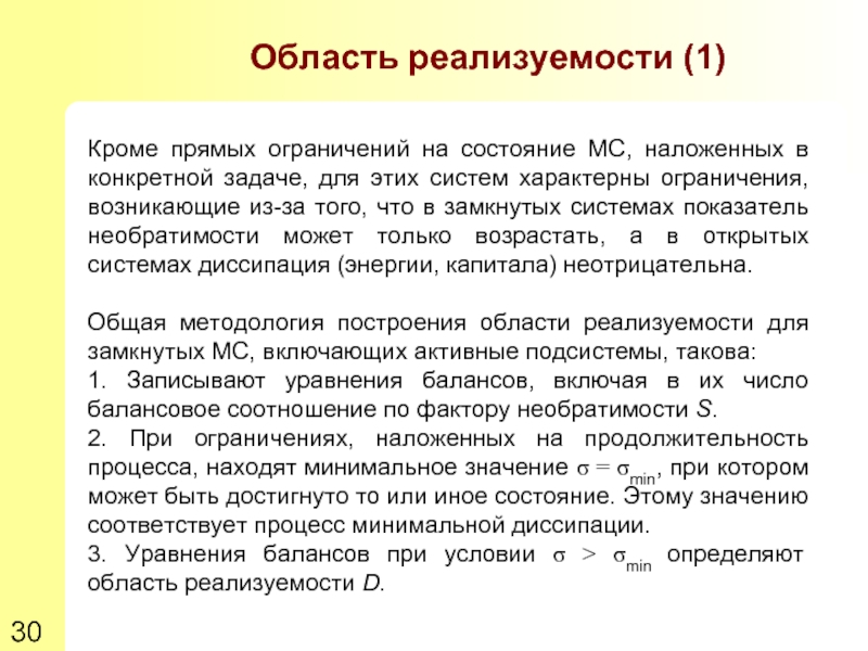 задаче, для этих систем характерны ограничения, возникающие из-за того, что в замкнутых системах показатель необратимости может только возрастать, а в открытых системах диссипация (энергии, капитала) неотрицательна.