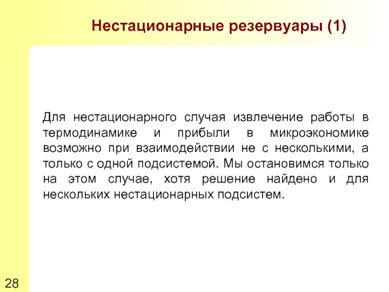 в микроэкономике возможно при взаимодействии не с несколькими, а только с одной подсистемой. Мы остановимся только на этом случае, хотя решение найдено и для нескольких нестационарных подсистем.