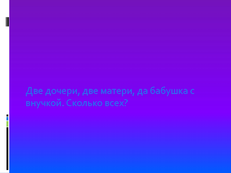 Две дочери, две матери, да бабушка с внучкой. Сколько всех?