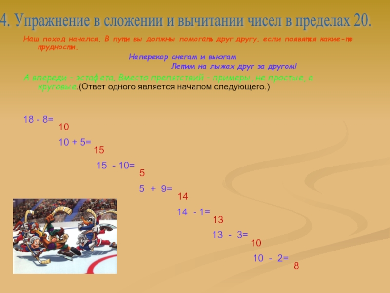 4. Упражнение в сложении и вычитании чисел в пределах 20.