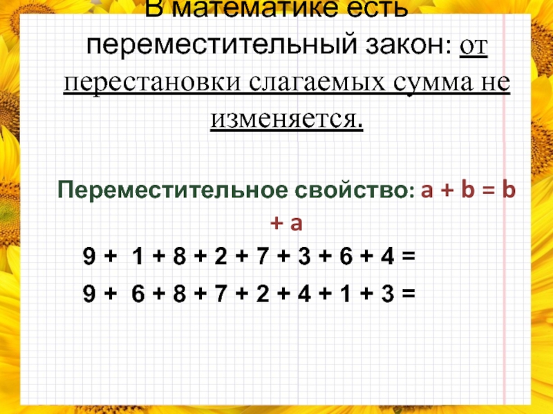 Переместительное свойство: a + b = b + a